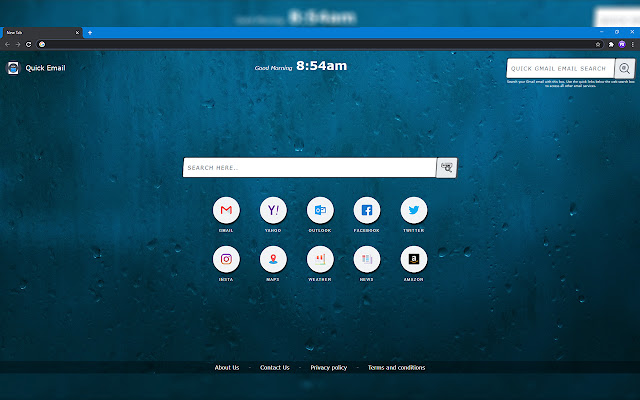 单击“添加到 chrome”,即表示我接受并同意安装 Quick Email 扩展程序并将 Chrome 新标签设置为由 Bing 进行网络搜索的服务提供的标签,以及隐私政策 (http://www.advertala.net/ privacy.html) 和使用条款 (http://www.advertala.net/term-and-conditions.html)。