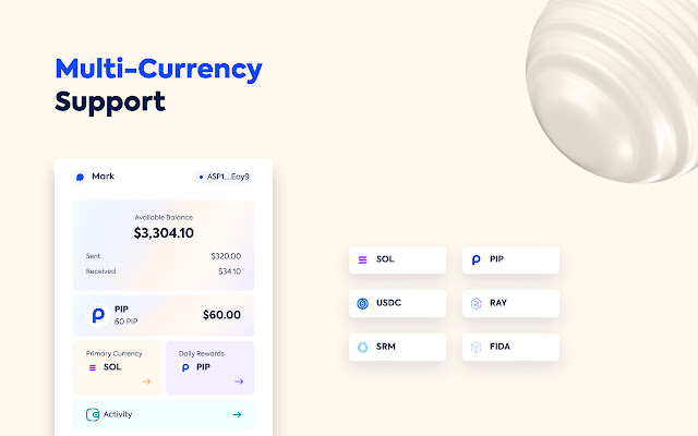 - 多代币支持(Solana、USDC、PIP、Raydium、Serum、Bonfida 和其他基于 Solana 的代币)
