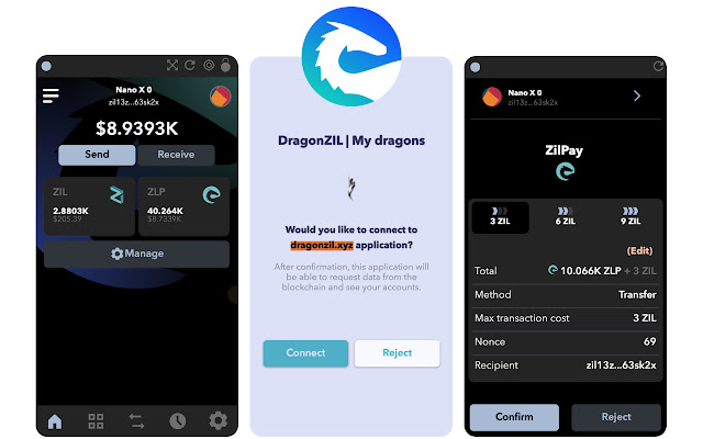 ZilPay 还允许用户创建和管理自己的身份(通过私钥、本地客户端钱包和 Ledger 等硬件钱包),因此当 Dapp 想要执行交易并写入区块链时,用户会获得一个安全界面来查看在批准或拒绝交易之前。