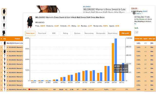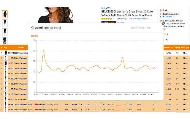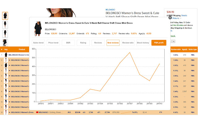 将每一次Amazon浏览都变成一次小而精的市场调研,多维度抓取市场数据,助您抓住每一个有潜力、高投资回报率的产品机会。SellerMotor浏览器插件实时抓取及估算Amazon产品数据,简洁易懂的内嵌式界面为您提供您所需的所有市场情报:日均销量,销售额,销量趋势,BSR排名,FBA运费,评分,评论量,留评率等。此外,SellerMotor特有的产品利润计算器及关键词搜索趋势将进一步的帮助您估算利润空间及市场大趋势,用数据驱动您的运营决策。