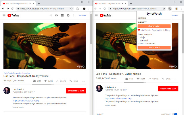 现在不需要数 1..2..3。只需加入房间,您的视频就会同步。