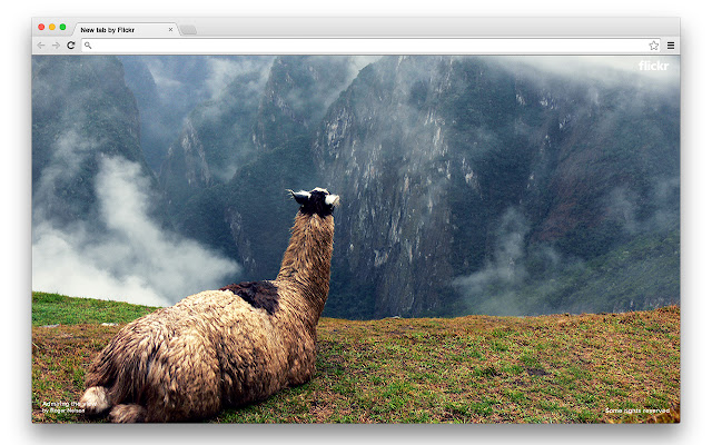 每次打开新标签时,Flickr 都会显示来自我们社区的一张流行照片。单击照片可在 Flickr 上查看或单击用户名可查看该用户的更多照片。