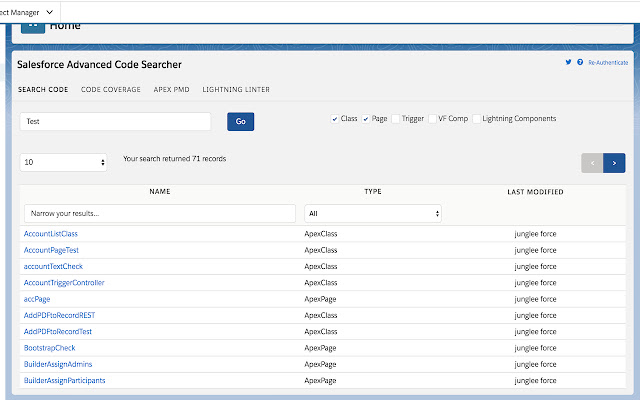 使用此扩展,您可以搜索您的 salesforce 实例的代码组件: