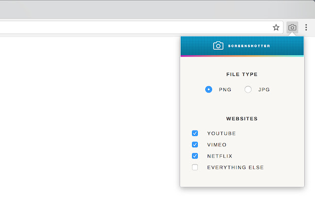 安装后,单击 Chrome 右上角的扩展按钮以选择视频屏幕截图将出现在哪些网站上。扩展开始时仅激活 YouTube、Netflix、Vimeo、亚马逊和 Hulu。