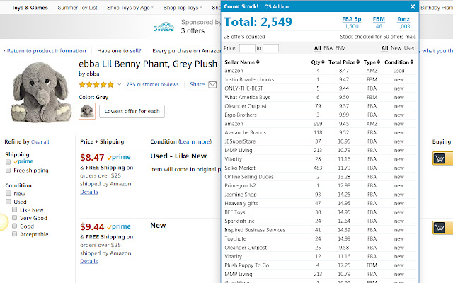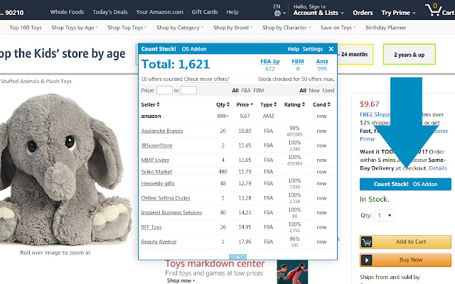 访问 Amazon.com 上的产品详细信息页面,然后单击“计算库存!”按钮或单击浏览器右上角的操作系统插件图标。