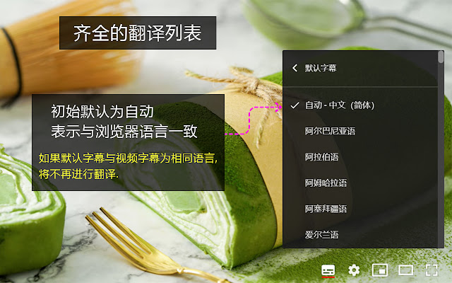 默认字幕的初始语言为浏览器语言。