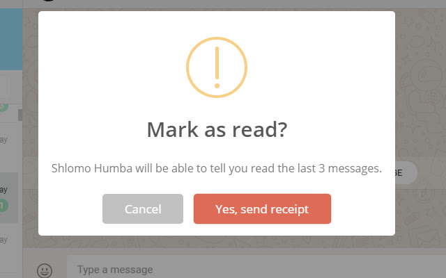 + 如果您想将特定聊天标记为已读,您可以打开它的子菜单并选择“标记为已读”。将显示警告,当您确认时,将发送已读回执。