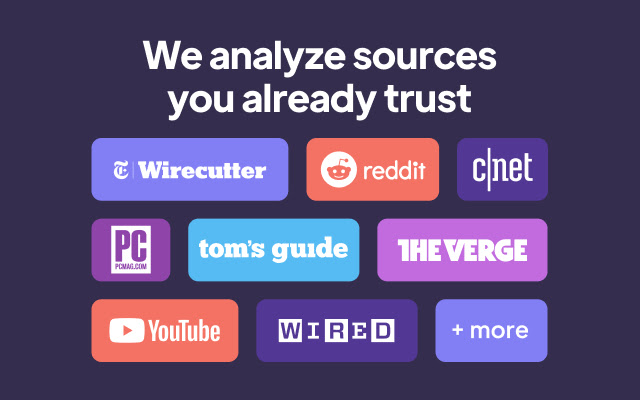 ✔ 查看来自 Wirecutter、YouTube、Reddit 等的评论——您的研究集中在一处。
