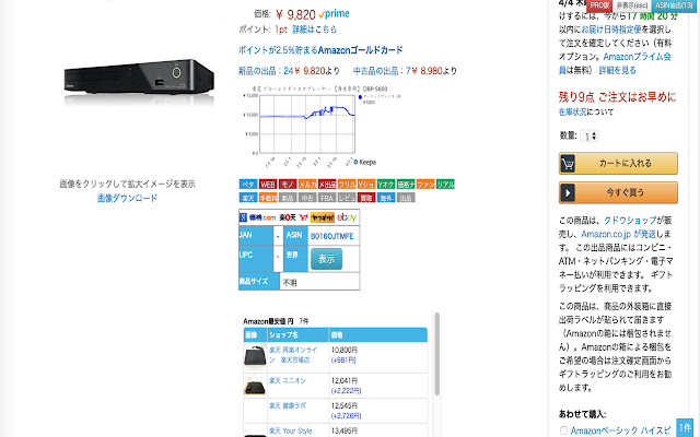 您可以比较其他公司的网站并查看亚马逊上的价格变化。与美国、日本、IT、法国、英国、DE 亚马逊兼容。此外,可以直接过渡到雅虎拍卖、雅虎拍卖、乐天和 Monorate。