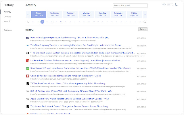 Better History 取代了浏览器的历史查看器,并添加了更多控件来管理和浏览您的历史。