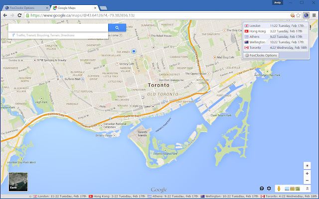 或者,只需单击地址栏旁边的 FoxClocks 图标即可快速访问您的时钟,而无需离开当前网页。如果状态栏导致某些网页的显示出现问题,您可以从“选项”页面完全禁用它。