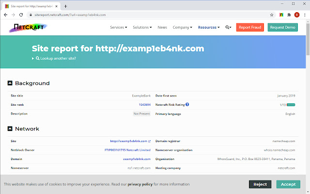 Netcraft 是一家位于英国巴斯的互联网服务公司。我们提供一系列与互联网数据分析、欺诈和网络钓鱼防御、Web 应用程序安全测试和自动网络扫描相关的服务。特别是,Netcraft 的反网络钓鱼服务获得了非常广泛的许可,最终保护了数亿人。