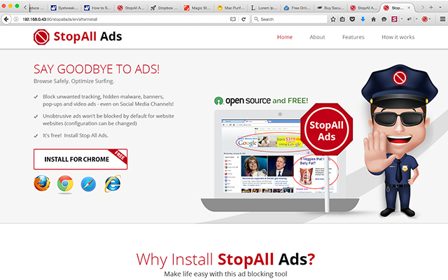 StopAll Ads 是 Adblock Plus 扩展程序(版本 2.7.3)的一个分支,具有一些报告、阻止等附加功能,用于阻止 Chrome 网络浏览器上的广告。此扩展程序提供了最增强的功能,使用户浏览安全、快速和简单。