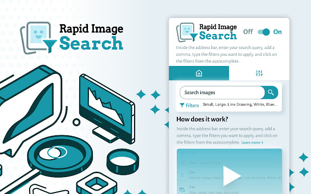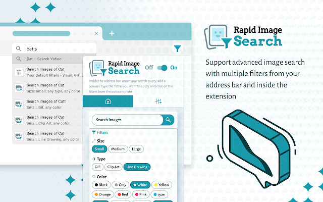 我们支持多种过滤器,例如尺寸、颜色和类型。您可以通过简单的命令或在扩展程序的仪表板上从地址栏进行图像搜索。我们还建议您提前配置自己的自定义设置。扩展程序中的设置页面非常简单、直观且易于使用。