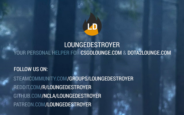 LoungeDestroyer 提升了 DOTA2 Lounge & CS:GO Lounge 的浏览体验。最初这是 Tampermoney 和 Greasemonkey 的用户脚本,但我们决定继续使用独立的 Chrome 扩展程序。