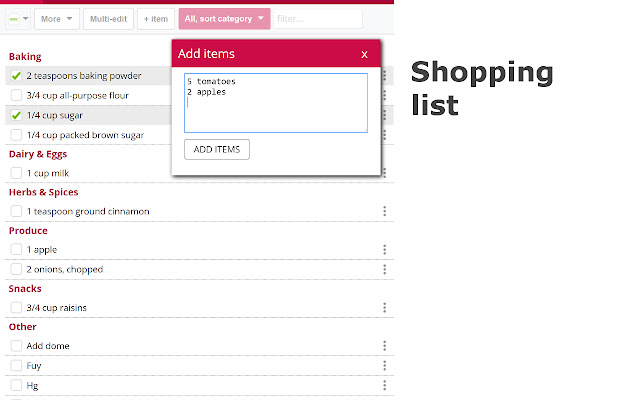 在一个位置管理您的所有食谱。编辑复制的食谱或添加您自己的食谱。用标签组织。当您在超市时,将食谱添加到您的购物清单并划掉项目。与膳食计划员一起计划膳食。分享您的食谱并从他人那里获得灵感。