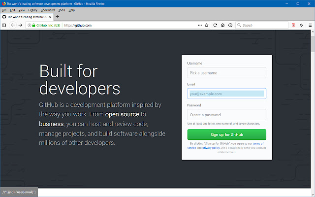 3. 单击该元素,他的 xPath 将显示在页面底部的面板中