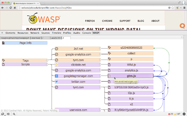 • WASP 将自动检测所有标签,包括 Google Analytics、Universal Analytics、DoubleClick、Google Tag Manager、Adobe Site Catalyst、IBM Coremetrics 和 Unica、Webtrends、所有标签管理系统供应商、所有广告网络、所有社交媒体标签 - 一直!