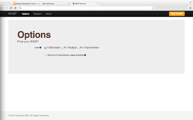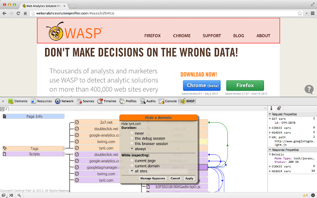 Web Analytics Solution Profiler (WASP) 是经理、营销人员和实施专家必备的工具,他们希望审计、验证和调试通过标签和信标从其网站发送的数据。