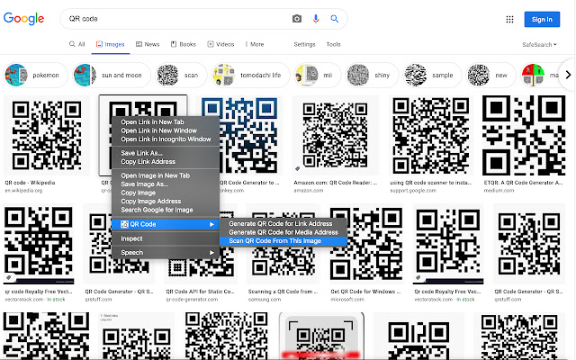 此外,在最新的 macOS 或 Chrome OS 系统上,扩展还支持识别其它类型的二维码。例如,在 macOS 上支持识别 "aztec", "code_128", "code_39", "code_93", "data_matrix", "ean_13", "ean_8", "itf", "pdf417", "qr_code" 和 "upc_e " 类型的二维码。