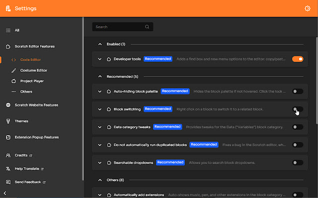 Scratch Addons 为 scratch.mit.edu 网站和项目编辑器提供了新功能和主题。