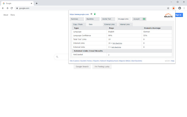 *工具*:通过直接从扩展中使用许多 Majestic SEO 的反向链接分析工具,您可以轻松地深入研究 URL。