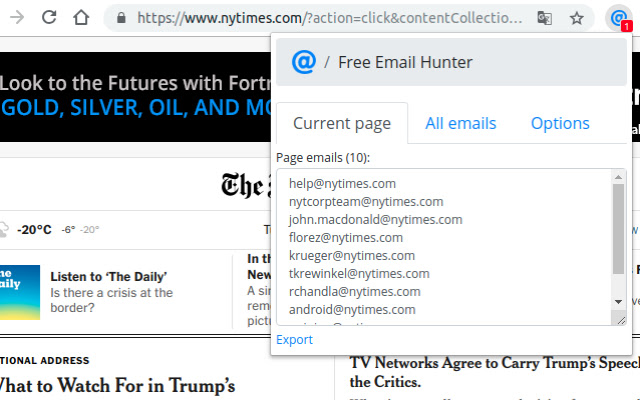 Email Hunter 可以在您访问页面时轻松地从页面中提取电子邮件地址并自动保存所有这些地址。