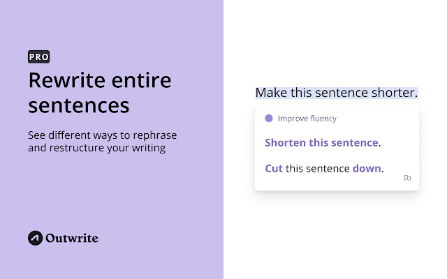 您可以使用 Outwrite 来解释整个句子、增强词汇量、修正被动语态以及增加或减少字数。