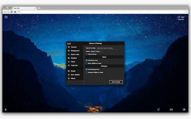 将您的新标签替换为简约且可自定义的主页,其中包含时钟、待办事项列表、天气、书签等等!