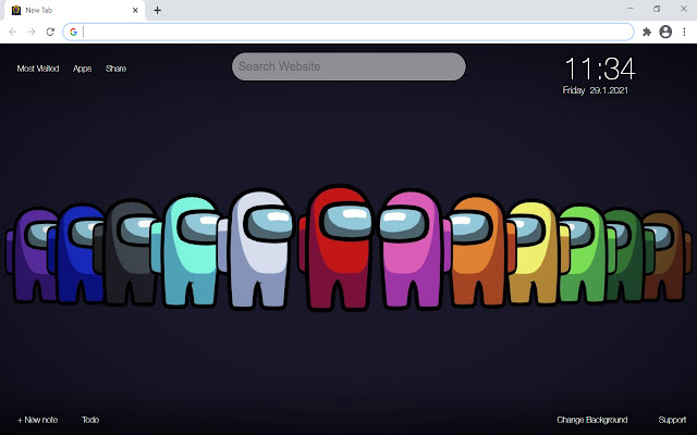 我们中的扩展程序具有一些最好的艺术作品,让您在 Chrome 浏览器上感觉良好。从新标签页的各种设计中选择您最喜欢的我们之间的背景。安装这个我们中间的 chrome 扩展程序,并在您的浏览器新标签页中体验我们中间的伟大设计。