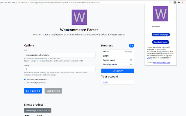 它不是免费的。您可以无限制地一页一页地解析单个页面。批量解析只返回一个随机产品。考虑购买 pmium。如果您想获得折扣,请考虑购买年度许可证。联系支持团队购买年度许可证。