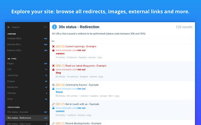 单击一次即可测试 100 个页面的 SEO/速度/安全性!检查损坏的链接、HTML/JavaScript/CSS、URL 重定向、重复的标题...