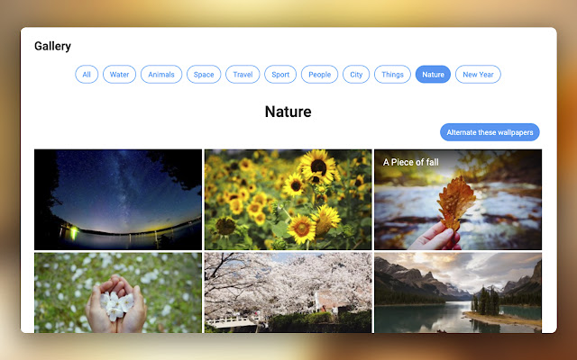 — Added an “Alternate Collection” feature to automatically change new tab wallpapers from a certain category daily;