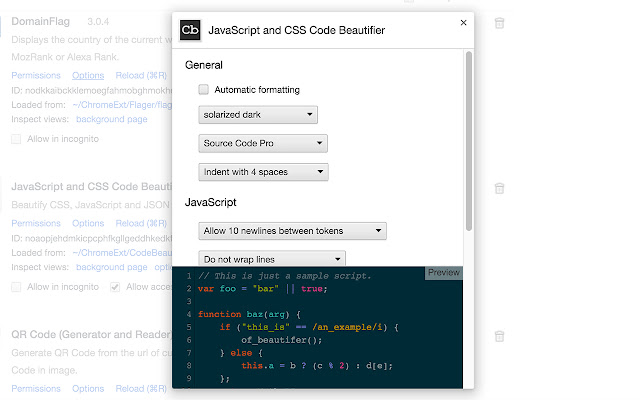 When looking at a CSS, JavaScript or JSON file, automatically(optional) make source code beautiful!