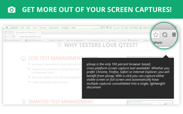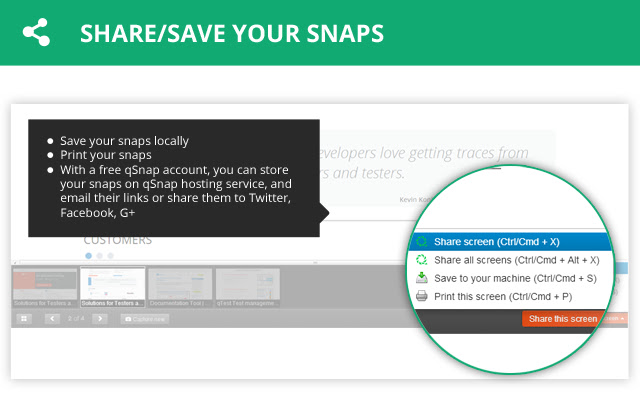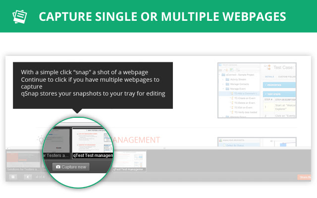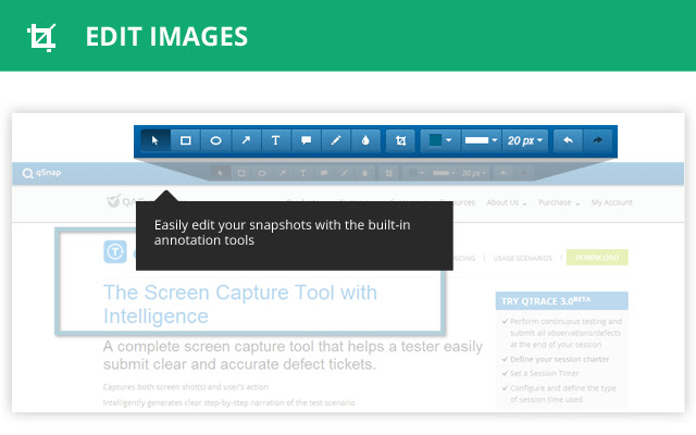 作为浏览器的轻量级插件,qSnap 始终可供您轻松捕获一个或多个屏幕图像。使用内嵌注释框和标注丰富您的图像,并无缝共享您的图像文档。而这一切完全免费!