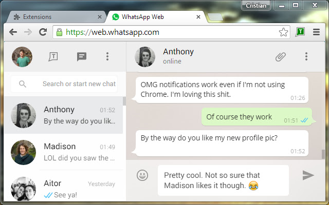 当您在台式计算机上时,再也不会错过 WhatsApp 通知。即使根本没有打开 WhatsApp 选项卡或 Chrome 窗口,此扩展程序也可以接收 WhatsApp 通知。这样,您在 PC 上工作时再也不会错过任何消息。