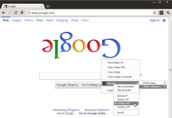翻转/旋转当前页面(只需单击按钮)或通过上下文菜单将转换应用于单个 html 元素。