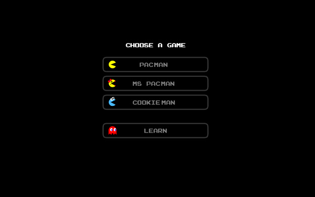 此包中的三款游戏(见截图):Pacman、Ms. Pacman 和 Cookieman