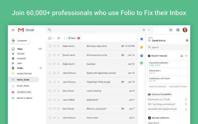 Folio 可帮助忙碌的专业人士直接从 Gmail 组织和管理他们的业务。