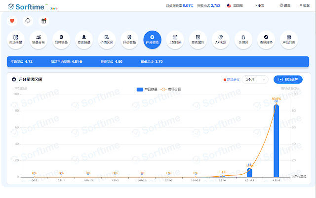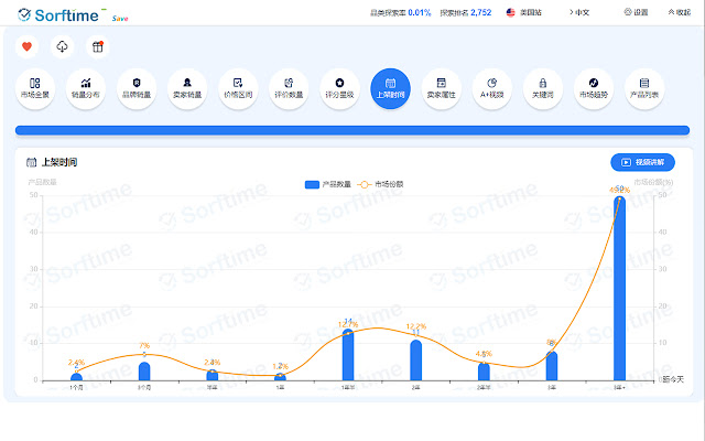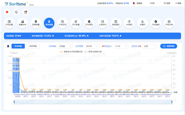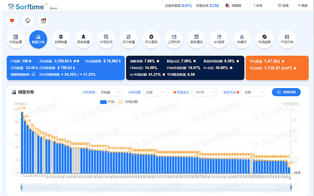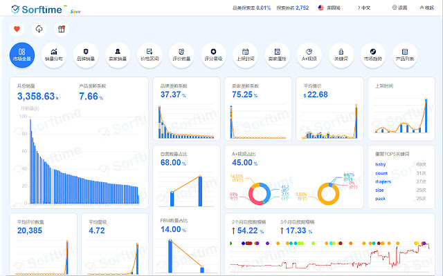 Sorftime Save 辅助亚马逊卖家产品调研及运营。10大图表直观展示类目产品销量、新品、市场竞争垄断性及售后风险等。