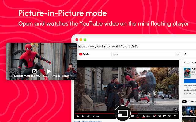 在浮动窗口中观看视频(始终位于其他窗口的顶部),这样您就可以在与其他网站或任何应用程序交互时密切关注您正在观看的内容。