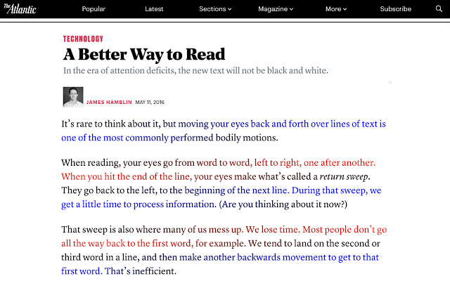 BeeLine 扩展适用于数百万个新闻网站和博客,您甚至可以使用它阅读 Kindle 书籍、Google 文档和 gmail。您还可以获得我们的 PDF 扩展,它适用于任何基于文本的 PDF(可在 http://bit.ly/1Fo1hXa 上获得)或我们的 iOS 应用程序 (http://bit.ly/1xNs76J)