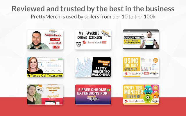 PrettyMerch 是亚马逊卖家对 Merch 下载次数最多和评价最高的扩展程序排名第一。