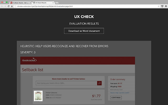 UX Check 使启发式评估变得快速而简单。该扩展程序将在您网站旁边的侧窗格中打开 Nielsen 的十项启发式方法。当您单击不符合启发式的元素时,您可以添加注释,并保存屏幕截图。最后,您可以将所有内容导出到 docx,以便与您的团队共享。