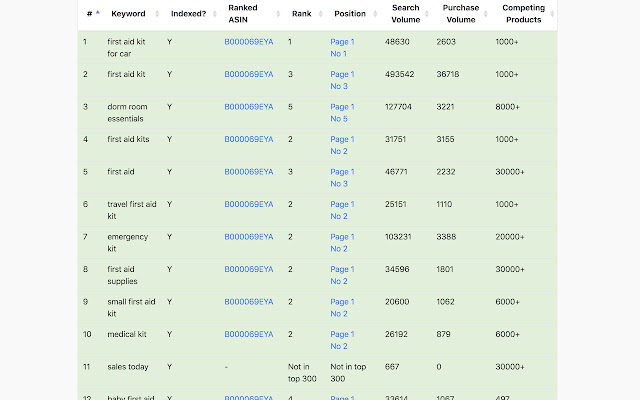 - 检查任何 ASIN 的任何关键字的当前排名位置