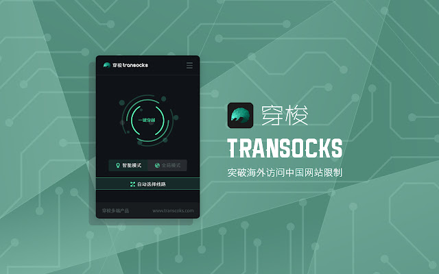 穿梭Transocks--简单易用的回国加速代理插件,海外回国看视频的利器,一键解锁和加速国内主流网站和应用,无限制追剧听歌看直播,帮助海外华人和留学生连接中国生活。