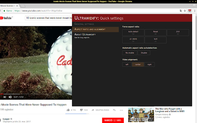 需要从您正在观看的这个 youtube 视频中删除不必要的黑条吗? Ultrawidify 在这里为您服务。