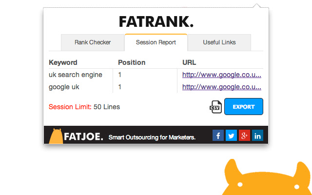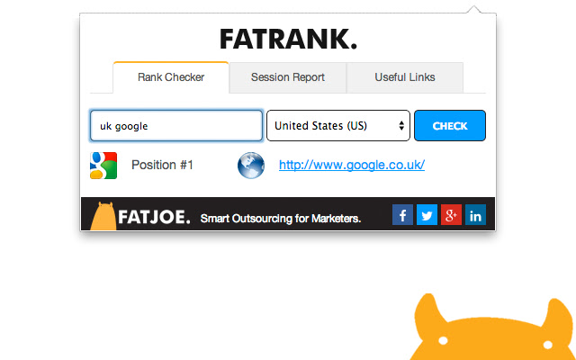 Fat Rank 是一款免费的轻量级浏览器关键字排名检查工具。只需访问一个网站,单击 Fat Rank 图标,输入您的关键字,它就会告诉您该网站在 Google 中的排名以及哪个页面 URL 排名。它非常实用,可用于竞争对手研究、勘探,甚至为您的客户提供简单的快速排名报告。