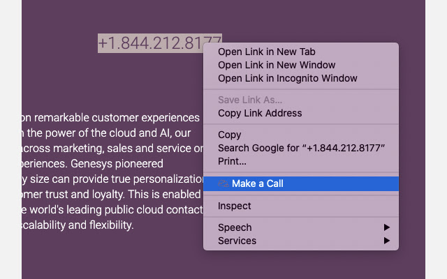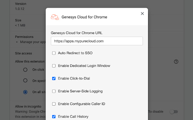 Genesys Cloud for Chrome 可让您随时随地在网络上使用 Genesys Cloud 用户体验。 Genesys Cloud for Chrome 提供代理优化的用户界面,可让您快速访问您的呼叫控制、状态管理、公司目录和性能指标。其他功能包括 WebRTC 软电话和音频控制、可配置的屏幕弹出、点击拨号/点击发送电子邮件、拖放会议等。 Genesys Cloud for Chrome 直接嵌入您的 Web 浏览器中,提供您最常用的联络中心功能以及您每天使用的每个 Web 应用程序。