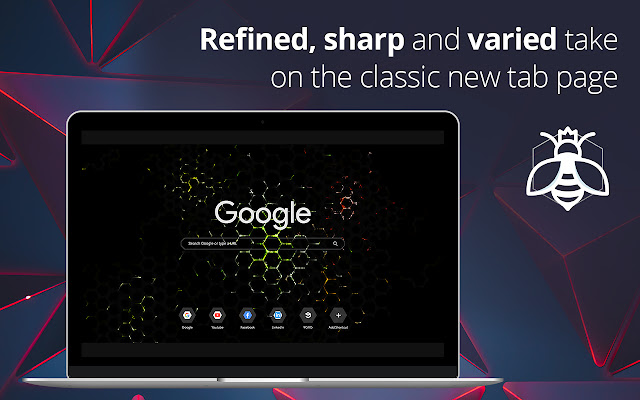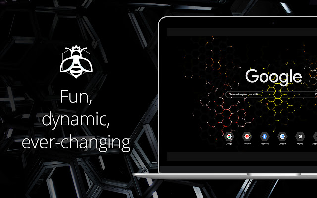 下载此扩展程序并观看形成数百个蜂窝形状的光网络从黑色壁纸的各个角落生长。它简单而优雅,但又不乏味,有点动感⚡。